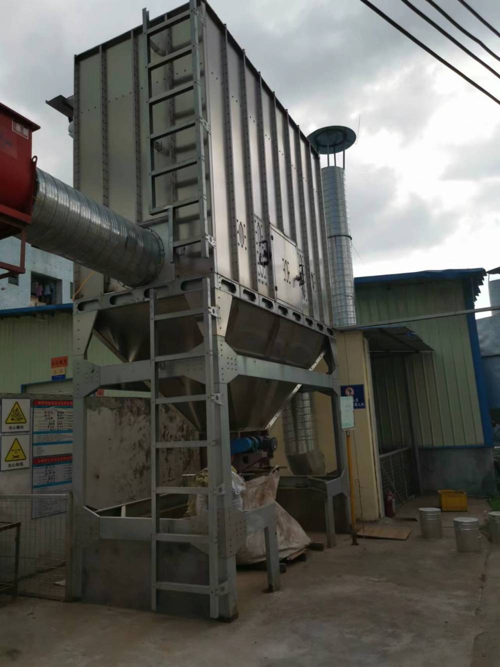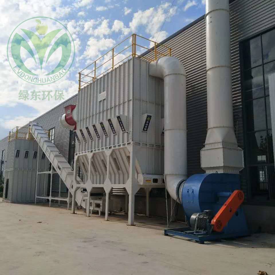 工作時含塵氣體由進風道進入灰斗,粗塵粒直接落入灰斗底部,細塵粒隨氣流轉(zhuǎn)折向上進入濁氣室,粉塵積附在濾袋外表面,過濾后的氣體進入上箱體至凈氣集 合管-排風道, 由風機排入大氣。當濾袋表面的粉塵不斷增加,導致設(shè)備阻力上升到設(shè)定值時,時間繼電器(或微差壓控 制器)輸出信號,程控儀開始工作,逐個開啟脈沖閥,使壓縮空氣通過噴口對濾袋進行噴吹清灰,使濾袋突然膨脹,在反向氣流的作用下,附于袋表的粉塵迅速脫離濾袋落入灰倉,粉塵由卸灰閥排出。全部濾袋噴吹清灰結(jié)束后,除塵器恢復正常工作。