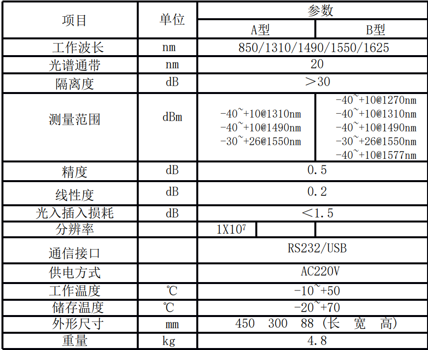 檢測(cè)精度0.1dB使用溫度范圍-10℃~50℃
