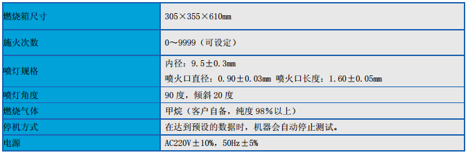 本設(shè)備由控制箱、垂直燃燒箱、水平燃燒箱、燃燒燈、電磁閥、高壓點(diǎn)火器、煤氣管、調(diào)壓閥、和信號控制線組成。控制箱設(shè)有:
