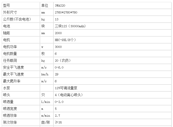 江蘇埃森3was20多旋翼無人機技術(shù)參數(shù)