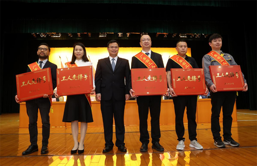 ▲市委副書記、松山湖黨工委書記劉煒為獲得全國五一勞動獎(jiǎng)狀、工人先鋒號、五一勞動獎(jiǎng)?wù)聵s譽(yù)稱號的先進(jìn)集體和先進(jìn)個(gè)人頒獎(jiǎng)并合影留念