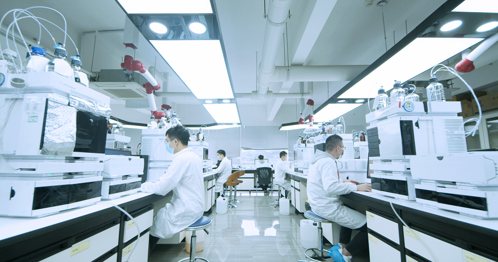 廣州一品紅制藥有限公司的實(shí)驗(yàn)室內(nèi),檢驗(yàn)人員在對(duì)產(chǎn)品進(jìn)行質(zhì)量分析。(受訪者供圖)