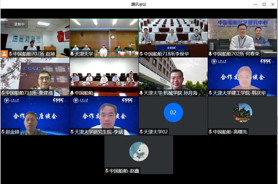 中國(guó)船舶集團(tuán)人力資源部、科技部、七〇二研究所、七〇七研究所、七一一研究所、七一八研究所,天津大學(xué)學(xué)工部、研究生院、科研院、機(jī)械學(xué)院、精儀學(xué)院、化工學(xué)院、建工學(xué)院等單位主要負(fù)責(zé)同志就校企合作進(jìn)行了深入交流和研討。