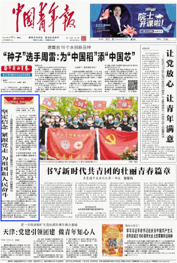 中國青年報:堅定信念 緊跟黨走 為祖國和人民奮斗