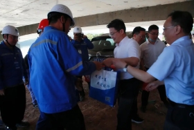 7月26日下午,市委副書記、市長(zhǎng)陳愛(ài)林到湘江東路、湘江西路建設(shè)工地開展“送清涼”活動(dòng),走訪慰問(wèn)一線施工人員。