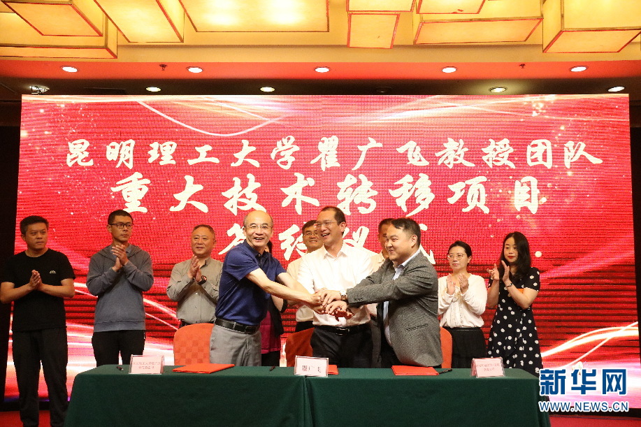 昆明理工大學(xué)瞿廣飛教授團(tuán)隊(duì)重大技術(shù)轉(zhuǎn)移項(xiàng)目簽約儀式(7月16日攝)。新華網(wǎng)發(fā)(張東偉 攝)