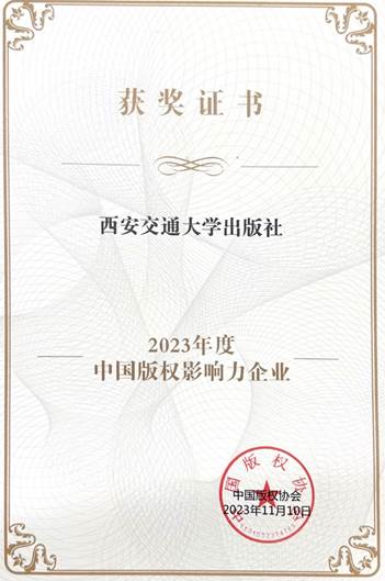 西安交大出版社獲評2023年度中國版權(quán)影響力企業(yè)