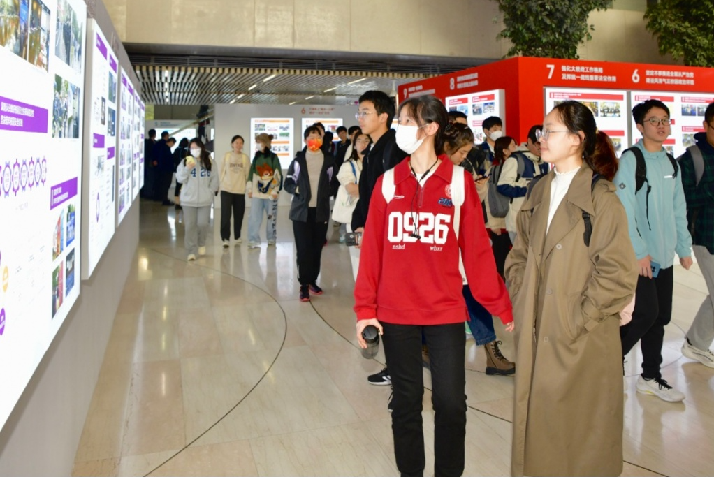 揭幕儀式結(jié)束后,校領(lǐng)導(dǎo)與師生代表共同參觀了主題展。