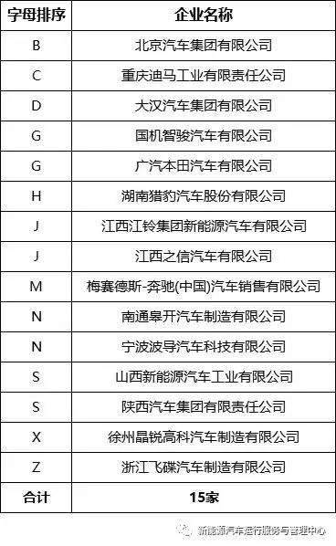 整車企業(yè)通過名單如下:(按首字母順序排列,排名不分先后)