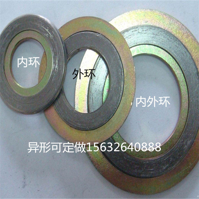 內(nèi)環(huán)一般采用和纏繞鋼帶相同材料符合管道介質(zhì)耐腐蝕要求通常優(yōu)于管道或法蘭的材料, 根據(jù)標(biāo)準(zhǔn)要求先將金屬纏繞帶固定在內(nèi)環(huán)上然后用金屬纏繞帶與石墨、石棉、四氟、無石棉等非金屬纏繞帶不斷相互交替重迭螺旋纏繞而成,在末端用點焊方式將金屬帶固定。內(nèi)環(huán)又叫加強環(huán)以避免纏繞墊片的散圈。