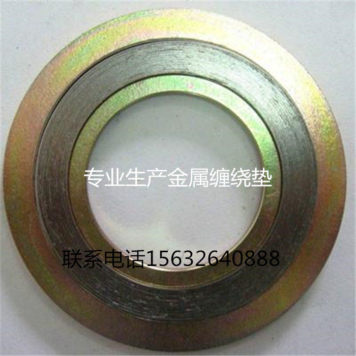 目前應(yīng)用最廣泛的一種密封墊片,為半金屬密封墊片中回彈性最佳的墊片,由V形或W形薄鋼帶與各種填充料如:石墨,四氟等交替纏繞而成。通過改變墊片的材料組合,可解決各種介質(zhì)對墊片的化學(xué)腐蝕問題。為加強主體和準(zhǔn)確定位采用金屬內(nèi)加強環(huán)和外定位環(huán)形式,利用內(nèi)外環(huán)來控制其最大壓緊度起到加強的作用并避免基本體的散圈,由于外環(huán)的存在使得墊片安裝起來更加方便。