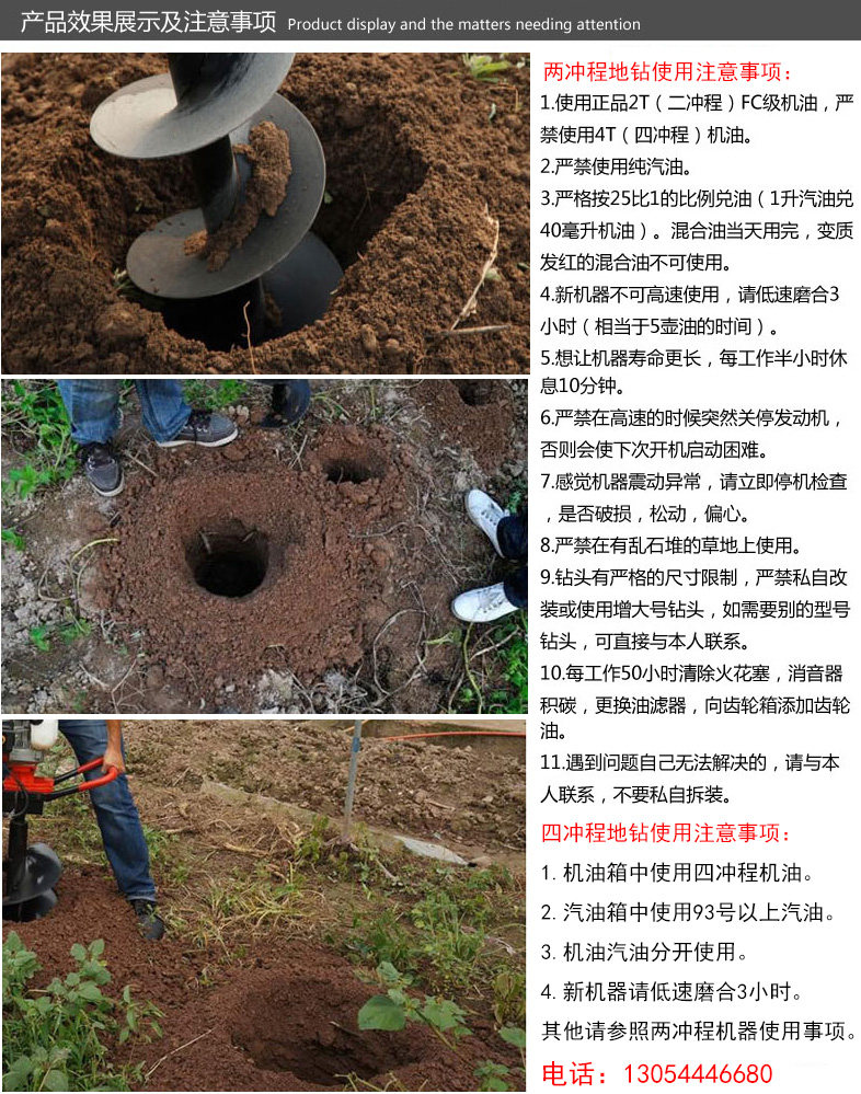 7.地鉆能夠讓人們從繁重的體力勞動解放出來,廣泛應(yīng)用于植樹造林,栽種果林、籬笆、及秋季給果樹施肥等。該地鉆動力強(qiáng)勁有力,外形美觀,操作舒適,勞動強(qiáng)度低,適合各種地形,效率高,便于攜帶及野外田地作業(yè)。